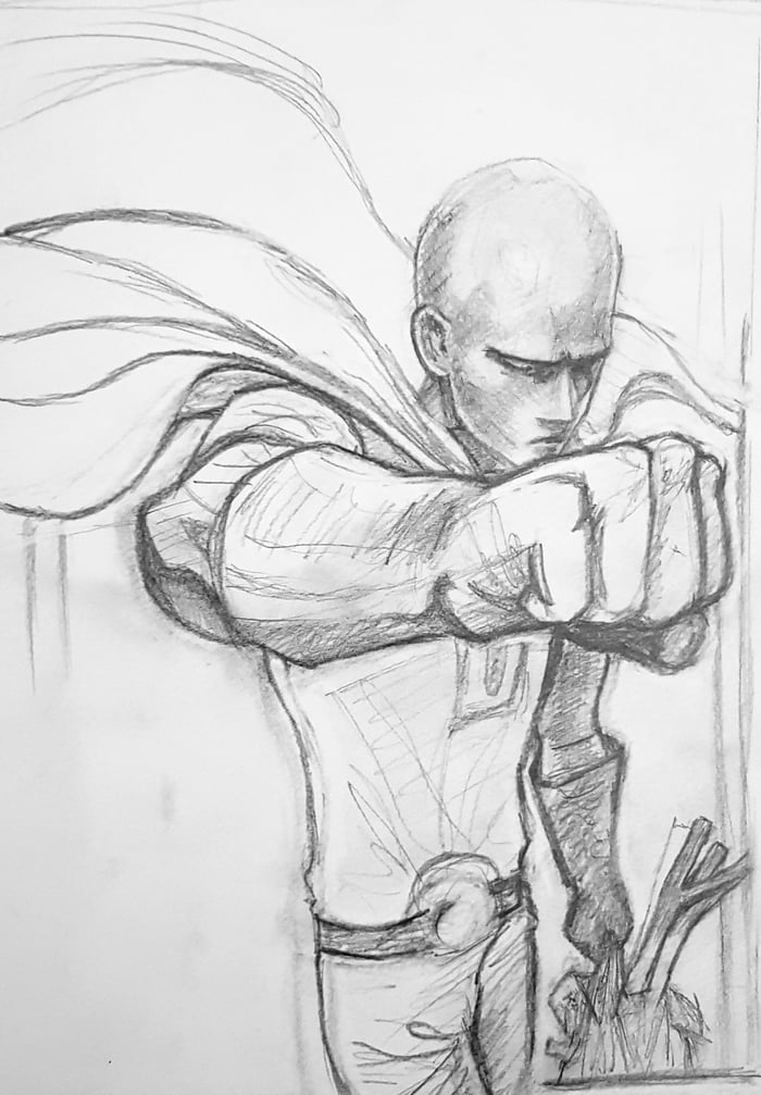 Saitama Sketch Drawing And How To Draw Saitama From One