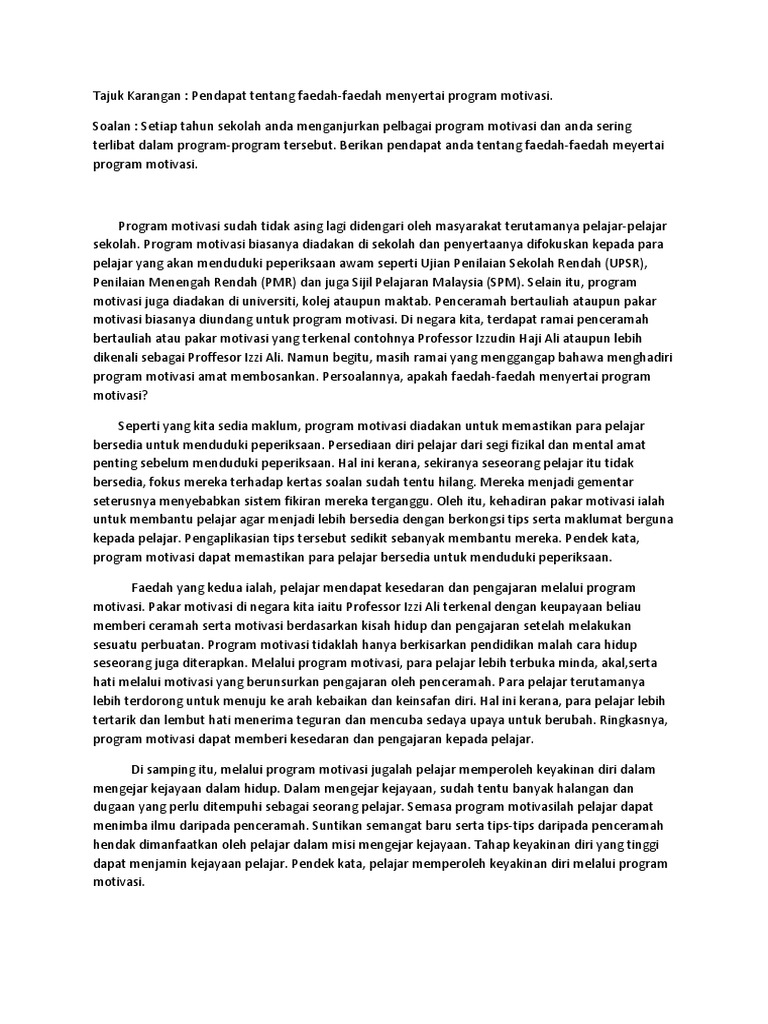 Tajuk Karangan Pendapat Tentang Faedah Faedah Menyertai