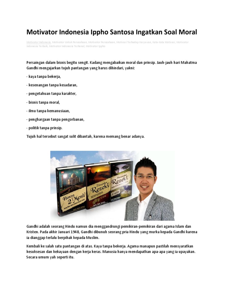 Motivator Indonesia Ippho Santosa Ingatkan Soal Moral