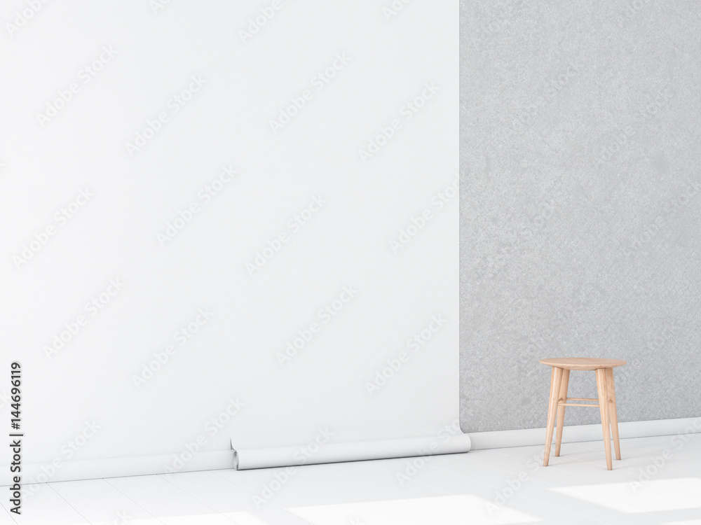Empty Room With White Blank Wallpaper Roll Mockup Hanging On
