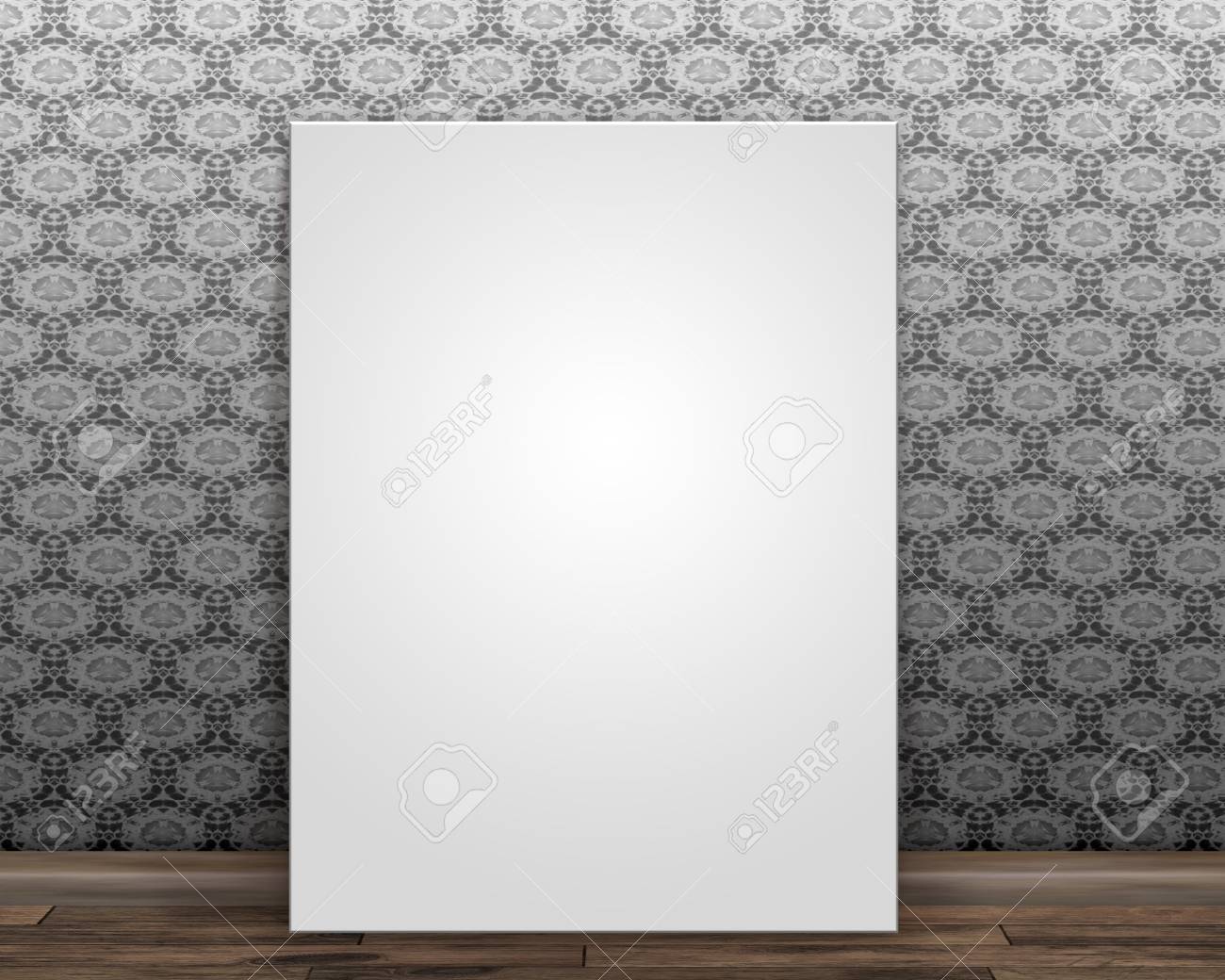 Blank Canvas On The Floor Leaning Against A Wall With Damask