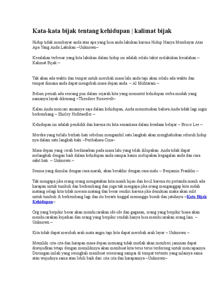 Koleksi Penuh Kata Bijak Dalam Hidup