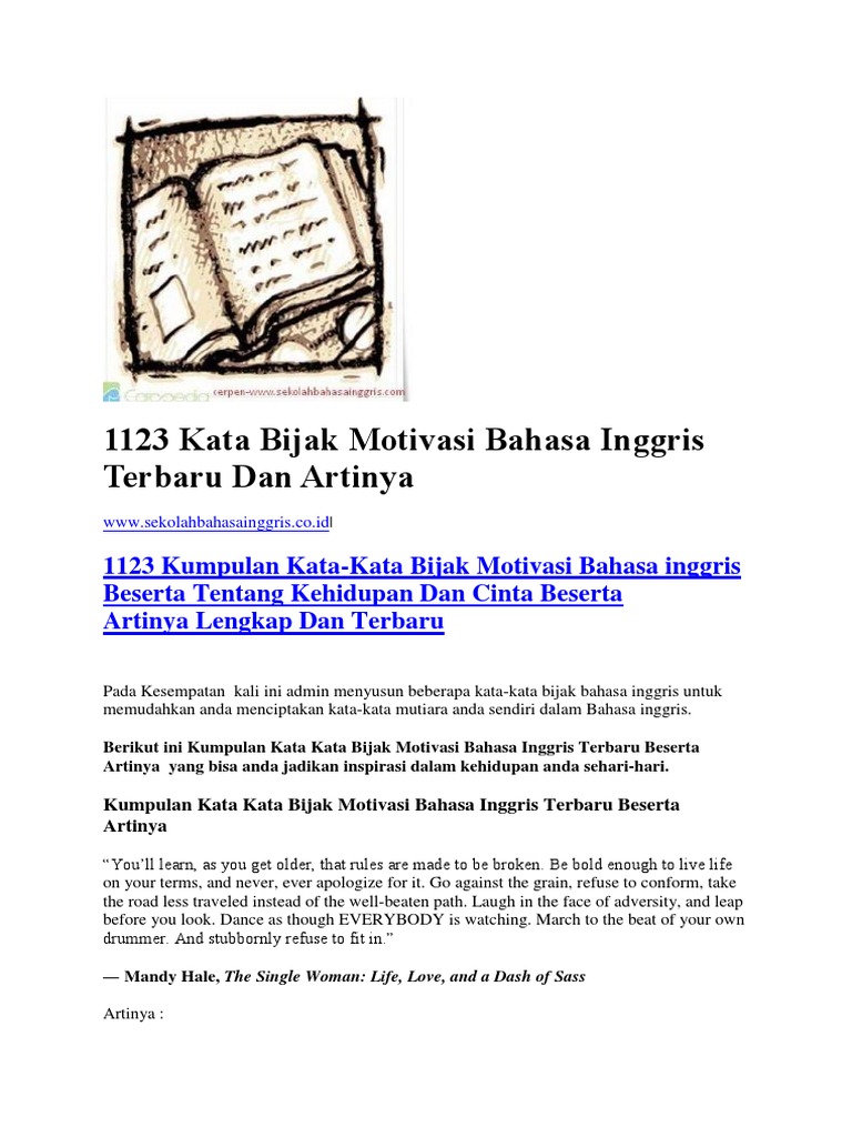 1123 Kata Bijak Motivasi Bahasa Inggris Terbaru Dan Artinya