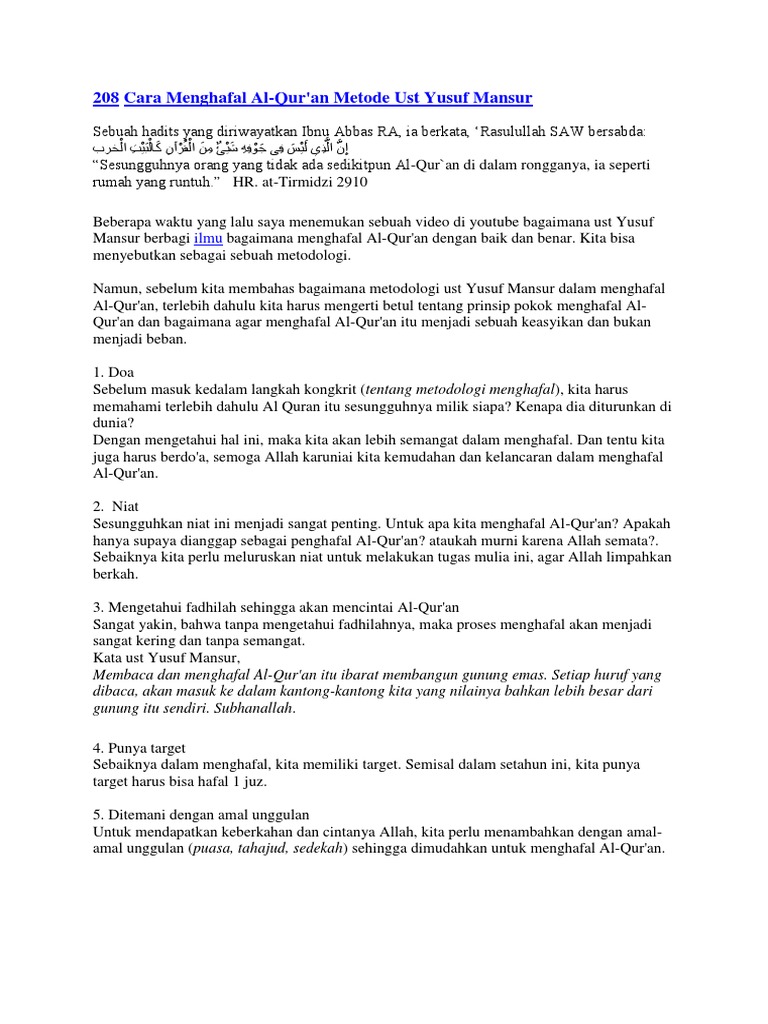 Ringkas Metode Hafal Al Quran By Ustad Or Ustadzah In