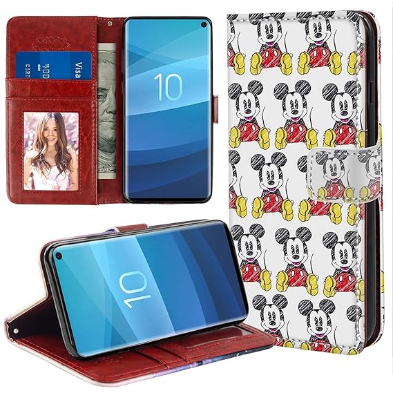 Disney Collection Wallet Case Compatible Samsung Galaxy S10 Mickey Wallpaper Premium Pu Leather Flip Case Cover With Card Slots Kickstand For
