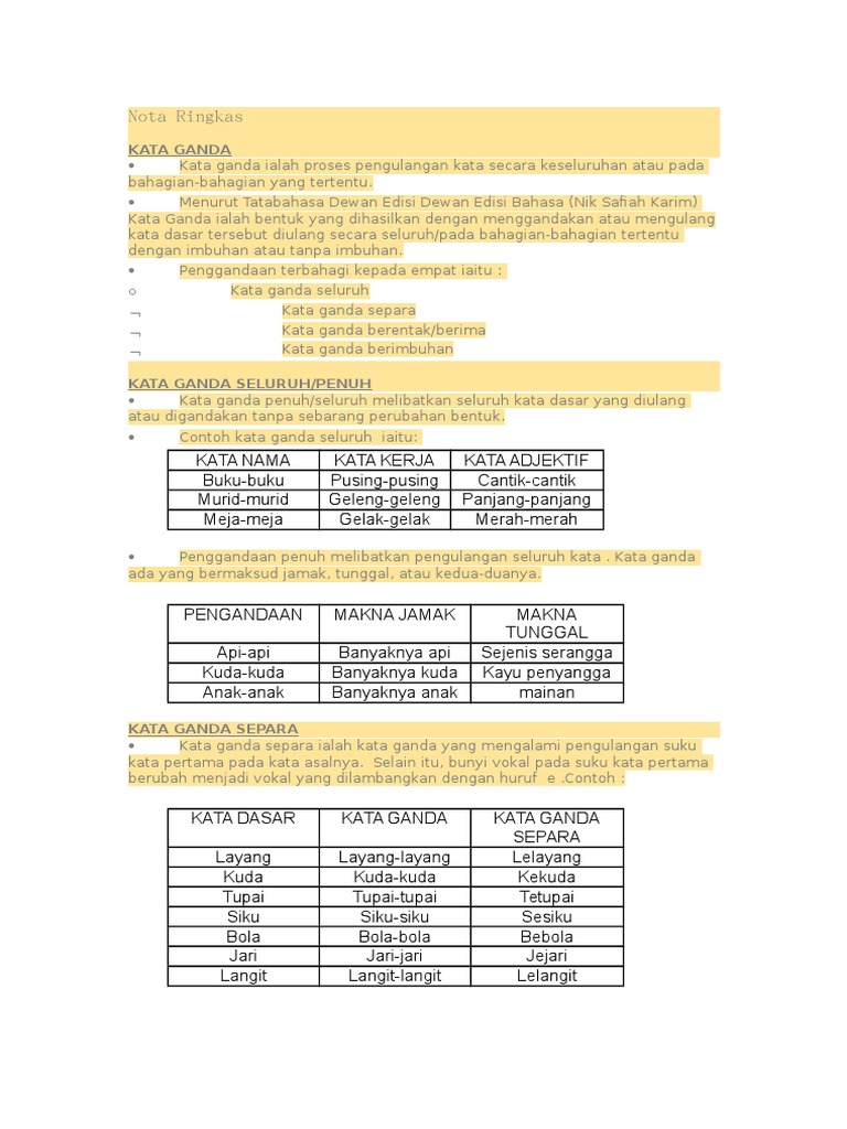 Latihan soalan kata ganda. Penggandaan berentak kata gandaan ialah satu proses pengulangan perkataan. Proses pengulangan ini berlaku pada seluruh perkataan ataupun pada bahagian bahagian tertentu dalam perkataan tersebut.
