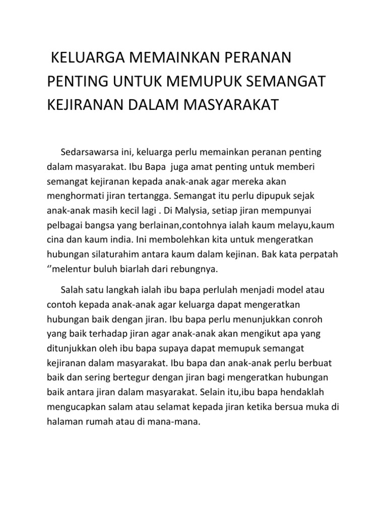Keluarga Memainkan Peranan Penting Untuk Memupuk Semangat