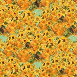Van Gogh S Sunflowers Orange Flowers On Teal Green