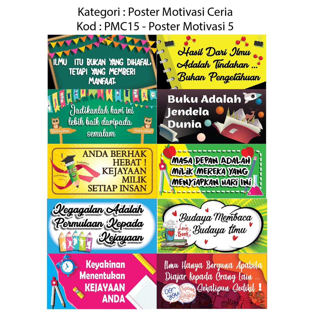 10pcs Set Banner Poster Motivasi Motivation Pmc15