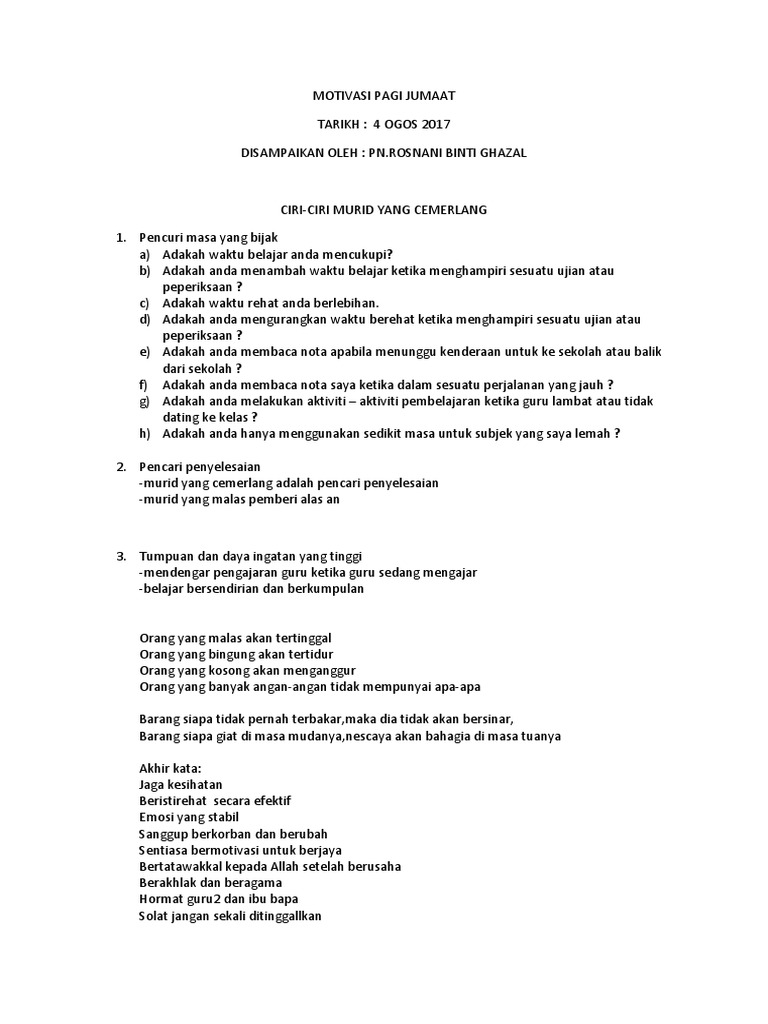 Selamat beraktifitas juga ya teman teman. Kata kata motivasi pagi hari jumaat kata kata motivasi pagi ni sebenarnya penting untuk kita rasa lebih bersemangat sepanjang hari. Semuga kalian semua di dalam perlindungan dan barakah allah yang maha pengasih dan penyayangjua selawat dan salam buat junjungan besar nabi muhammad saw.