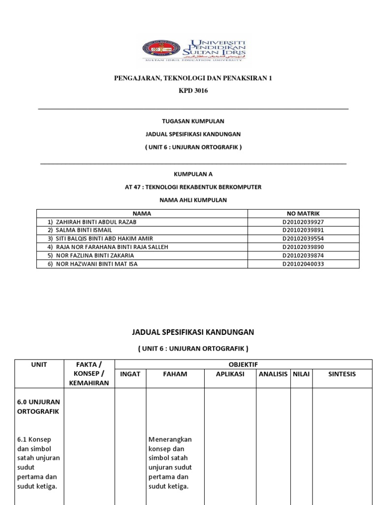 Nota Lengkap Unjuran Ortografik Vet3023 Reka Cipta
