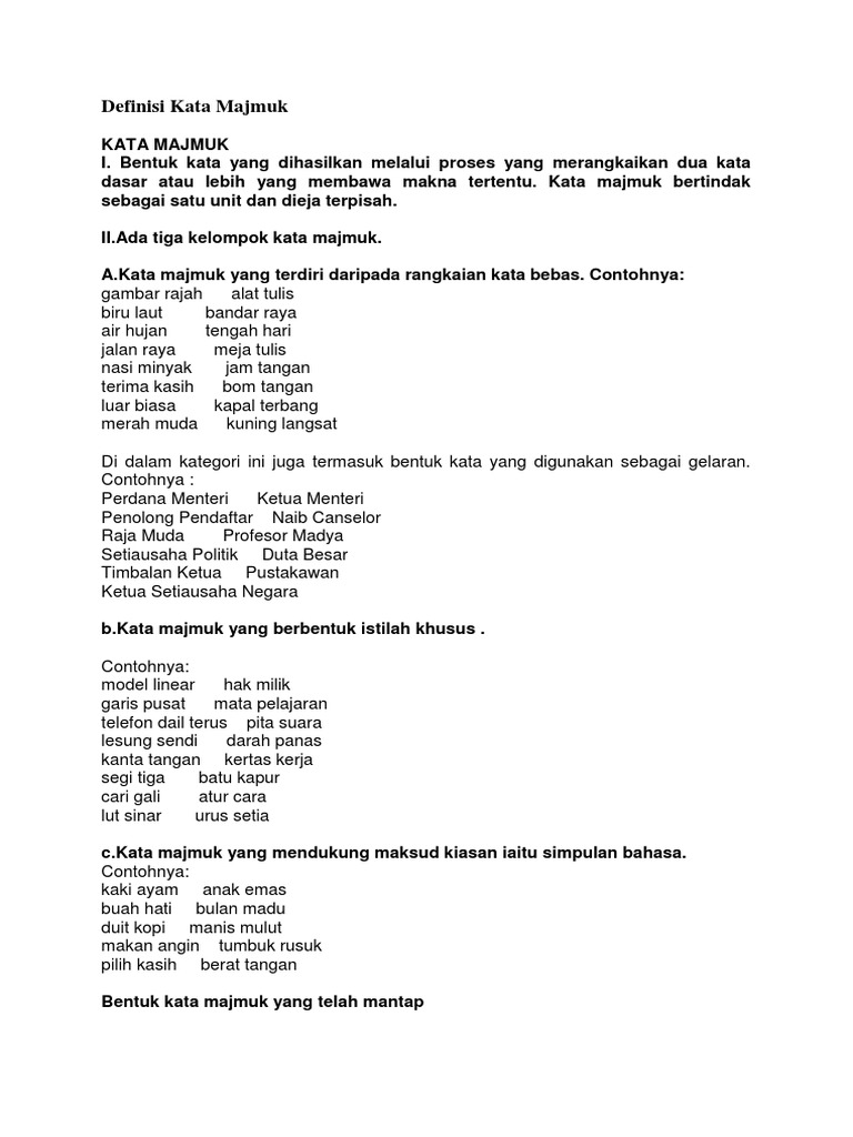 Contoh Kata Majmuk Rangkai Kata Bebas Materi Pelajaran 8