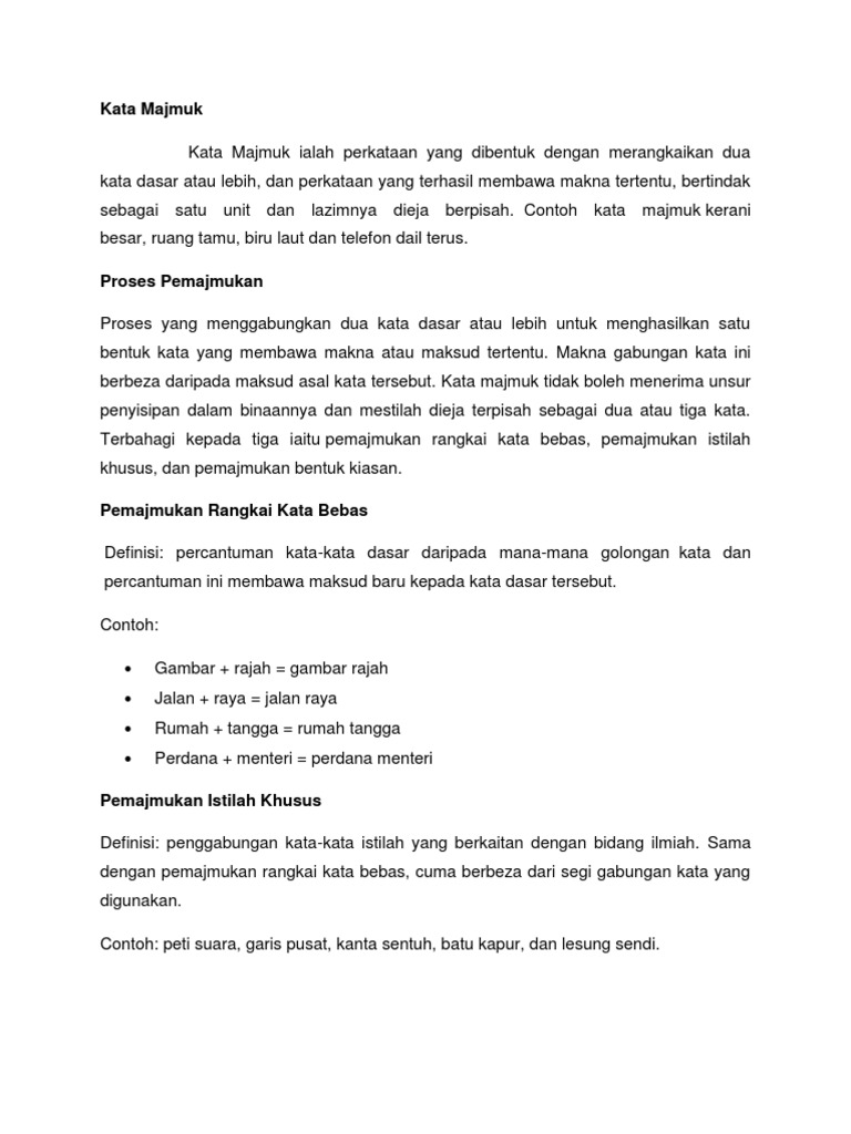 Kata Majmuk Kata Majmuk Ialah Perkataan Yang Dibentuk