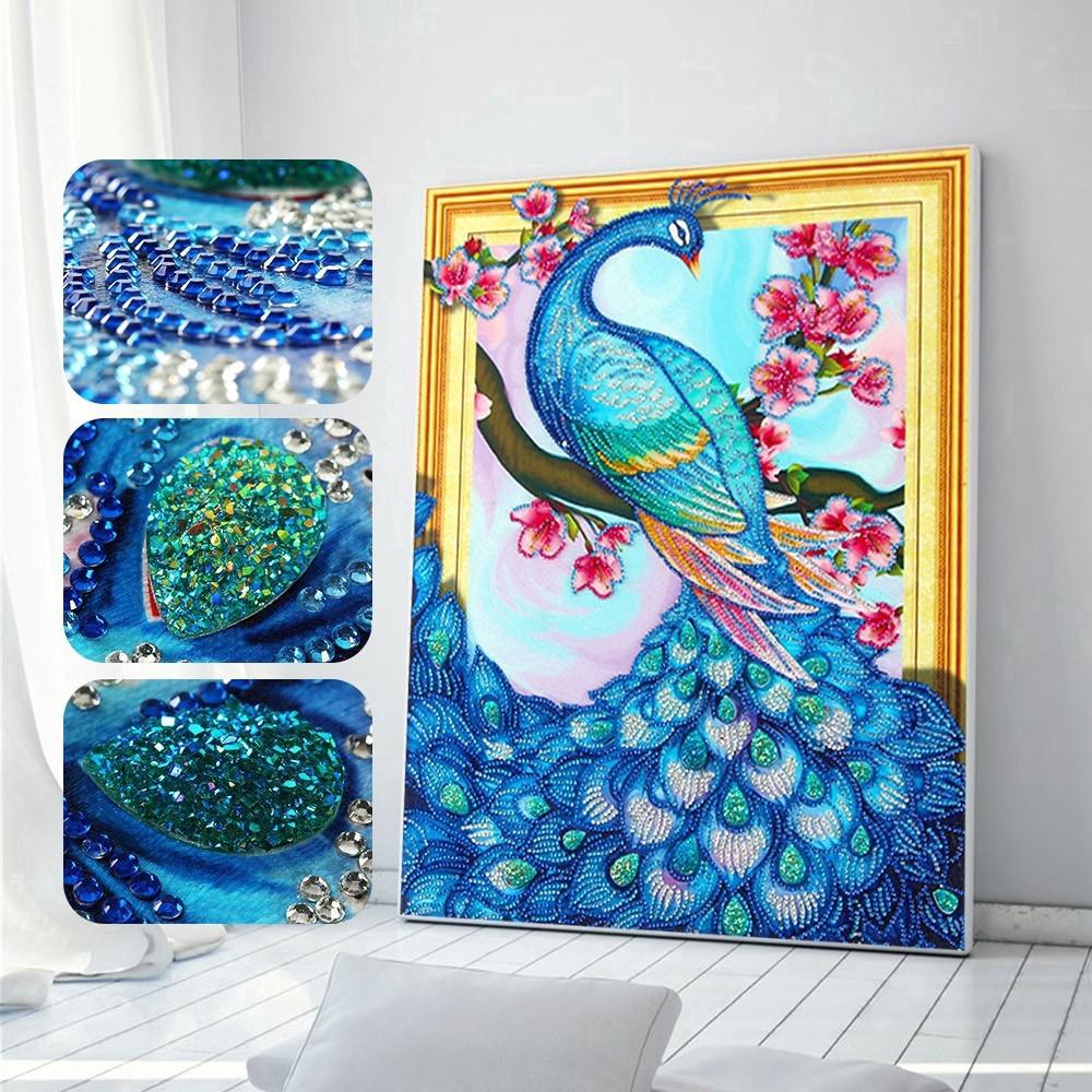 Diy Lukisan Diamond 5d Dengan Gambar Burung Merak Dan Hiasan Berlian Buatan