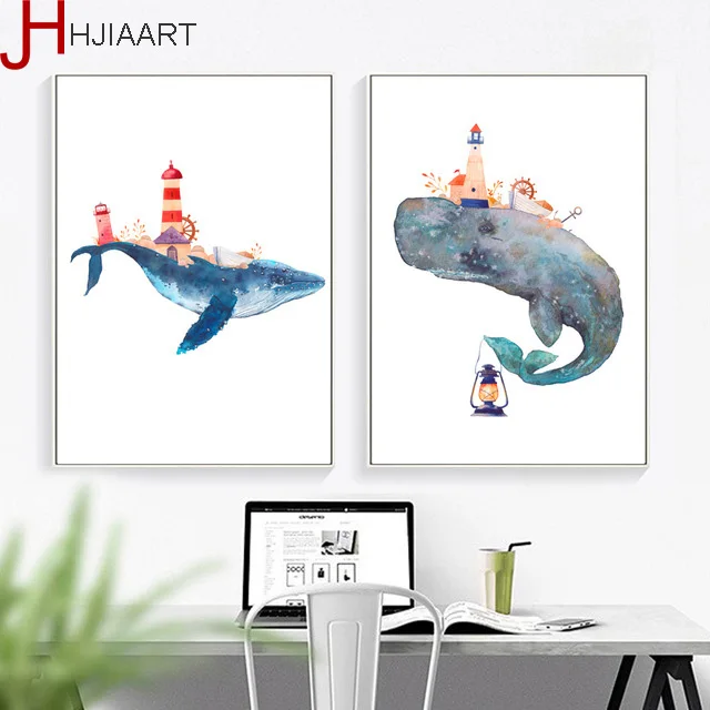 Us 4 58 49 Off Ikan Paus Lighthouse Kanvas Lukisan Dinding Seni Poster Dan Cetakan Nordic Poster Cat Air Dinding Gambar Dekorasi Kamar Anak Anak In