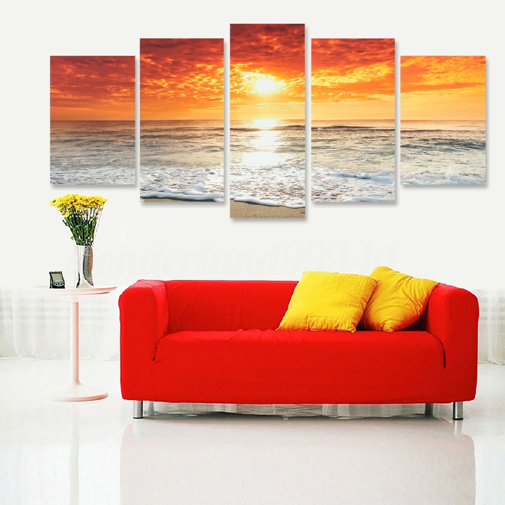 5pcs Lukisan Dengan Bahan Kanvas Dan Gambar Matahari Terbenam Untuk Hiasan Dekorasi Rumah