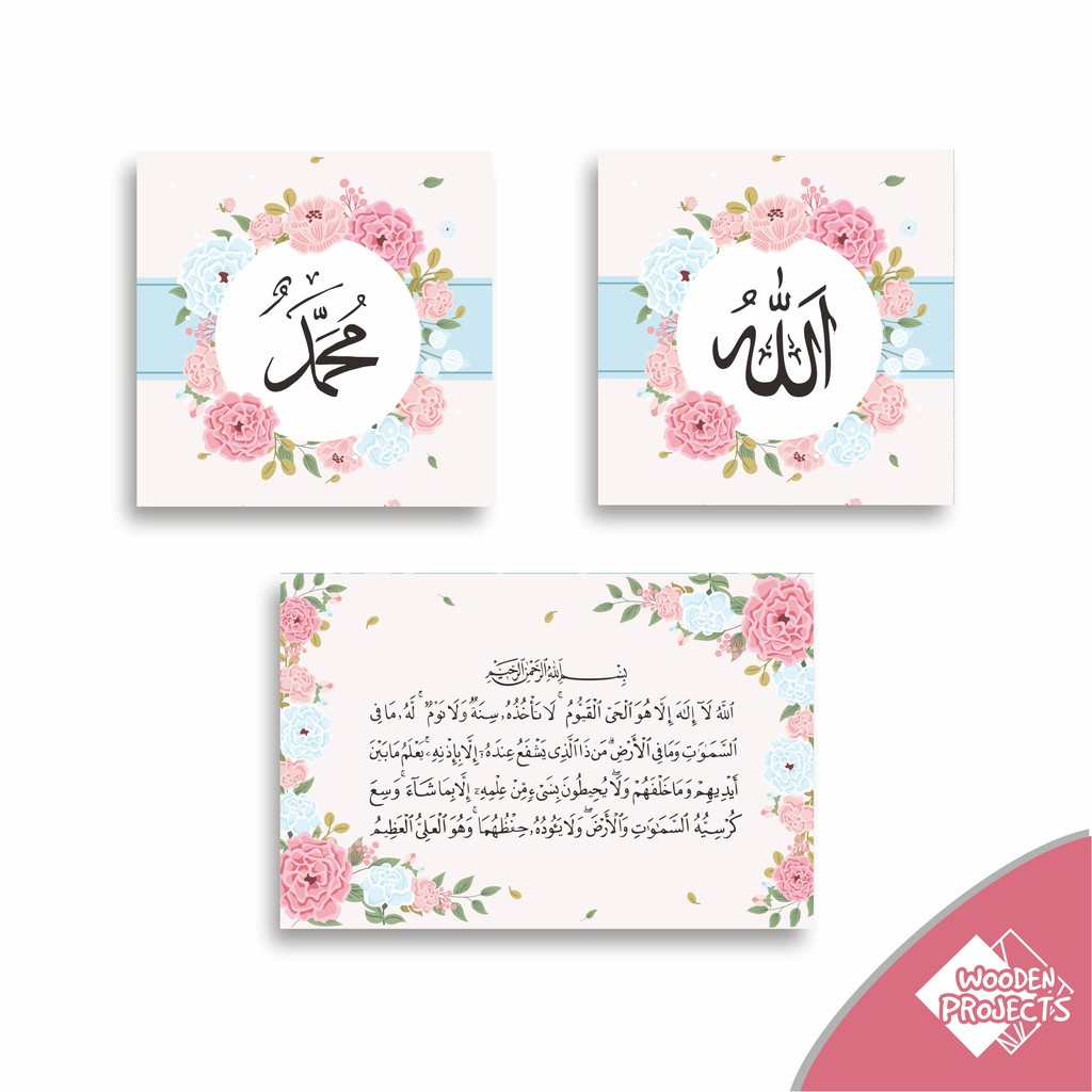 Hiasan Dinding Kaligrafi Walldecor Shabby Lafadz Allah Muhammad Dan Ayat Kursi Kfl1