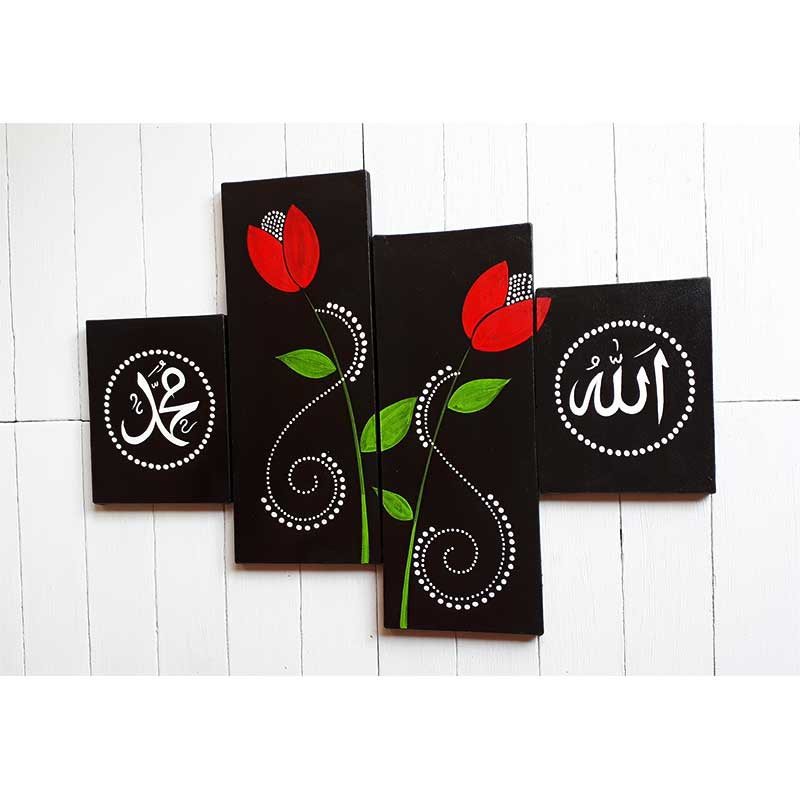 Lukisanku Lukisan Kaligrafi Allah Muhammad Bunga Shabby Chic 1 Lukisan Tangan