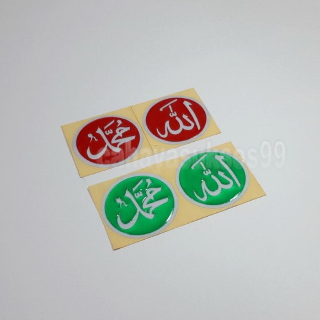 Sticker Timbul Kaligrafi Tulisan Allah Merah Hijau 5cm Bulat