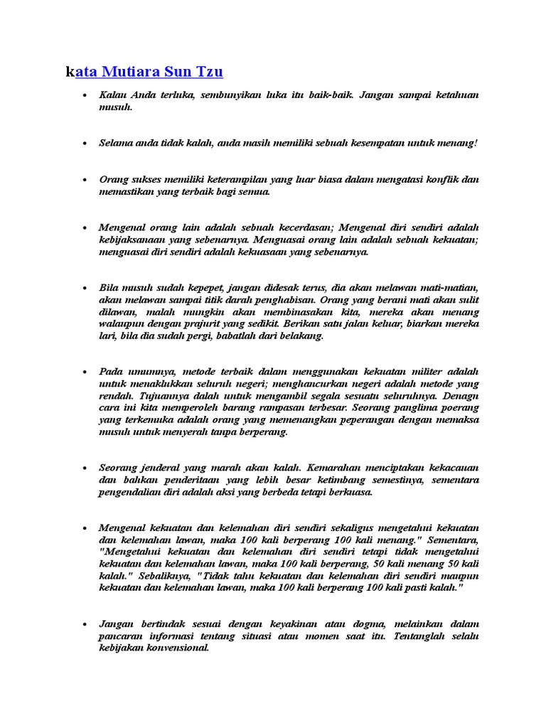 Sun Tzu Quotes Kata Kata Kata Mutiara Kata Bijak
