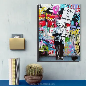 Hadiah Banksy Seni Lukisan Abstrak Besar Cinta Adalah Jawaban Wall Art Rumah Decor Einstein Memegang Tanda Kanvas Cetak Dropshipping Buy Pencetakan