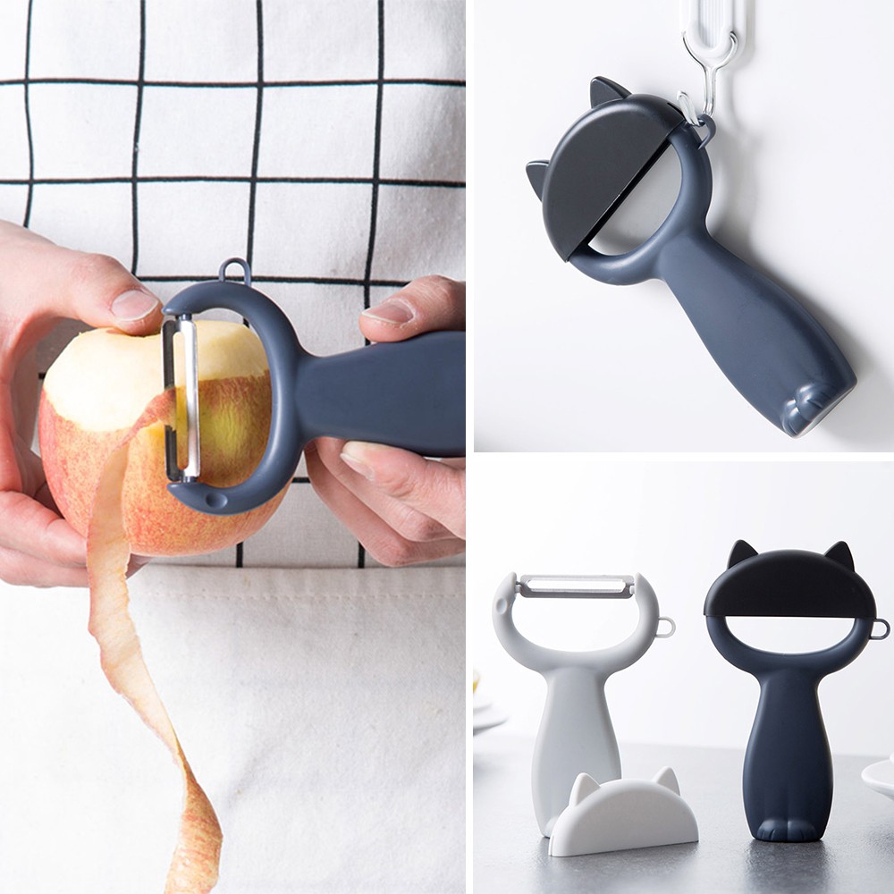 3 In 1 Portable Fruit Peeler Kitchen Cute Cartoon Cat With Cover Peel Knife Household Kitchen Tools