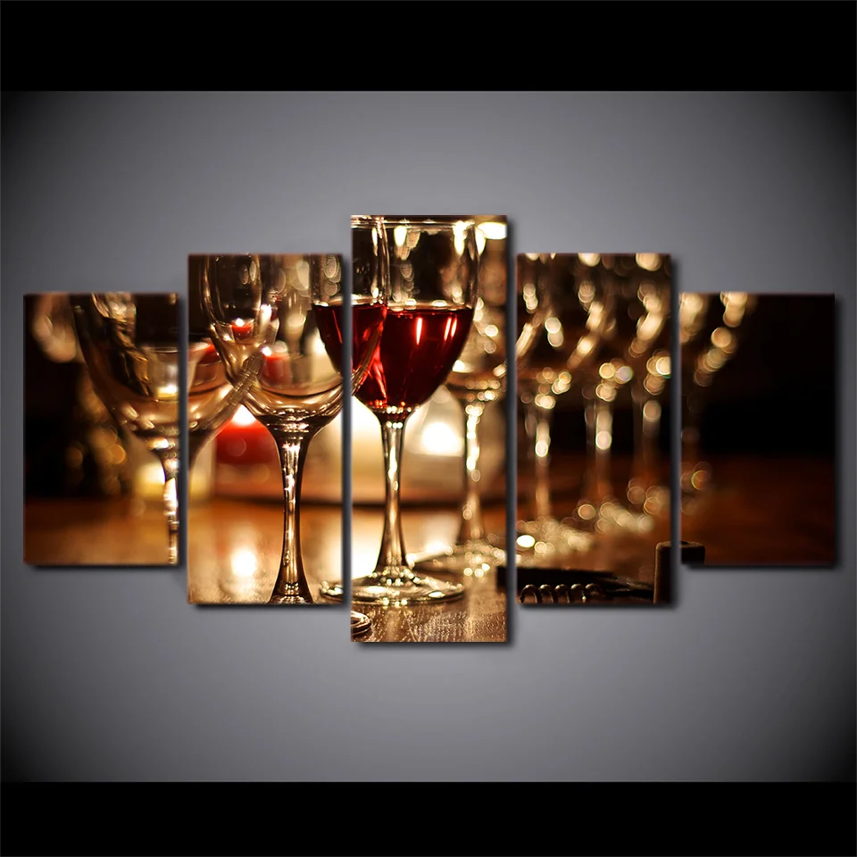Unframed Hd Printed 5 Piece Canvas Art Beverage Glasses Painting Wall Decor Poster Art Canvas Picture For Living Room Artwork Di Painting