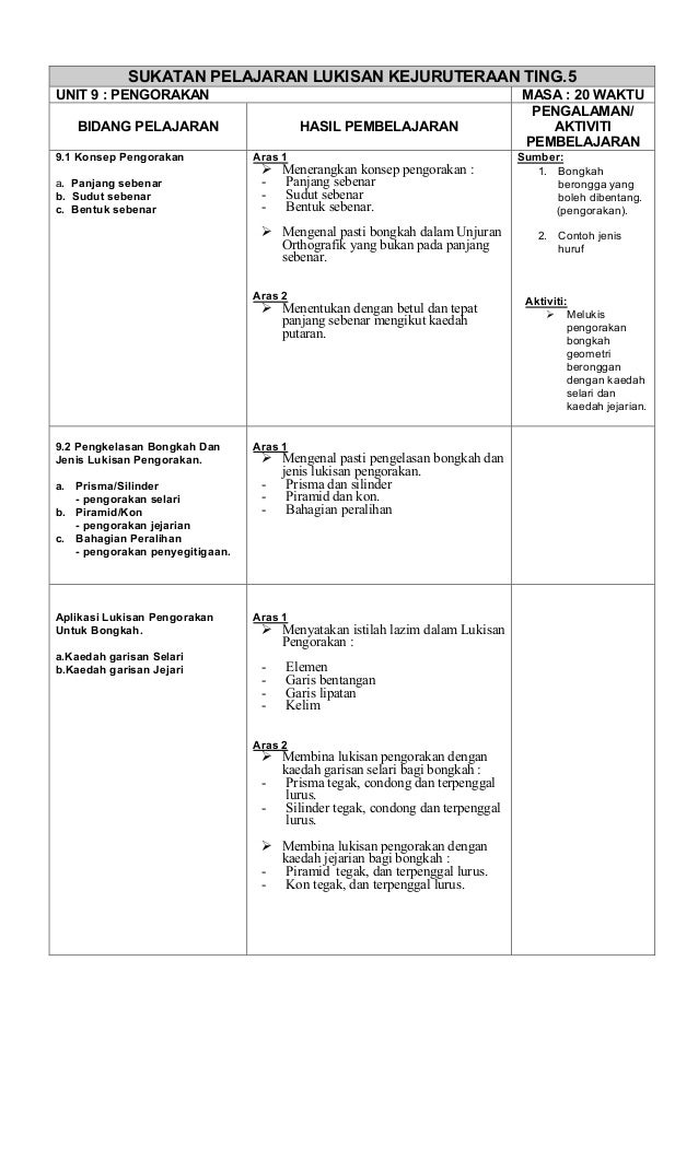Sukatan Pelajaran Lukisan Kejuruteraan