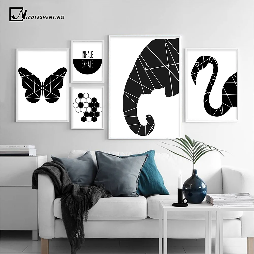 Us 3 8 5 Off Nordic Dekoratif Lukisan Hitam Putih Sederhana Elegan Segar Rusa Surat Burung Geometri Daun Tidak Dibingkai Qy006 Di Painting