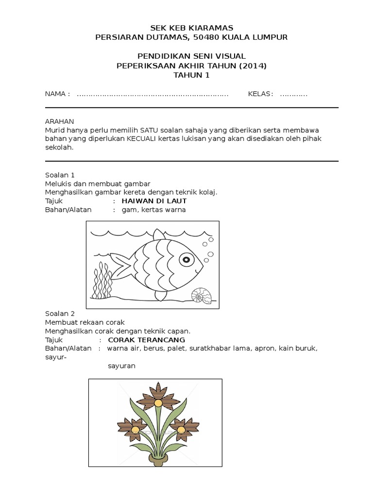 Rph Menggambar Kolaj Hidupan Laut Kssr Thn 1