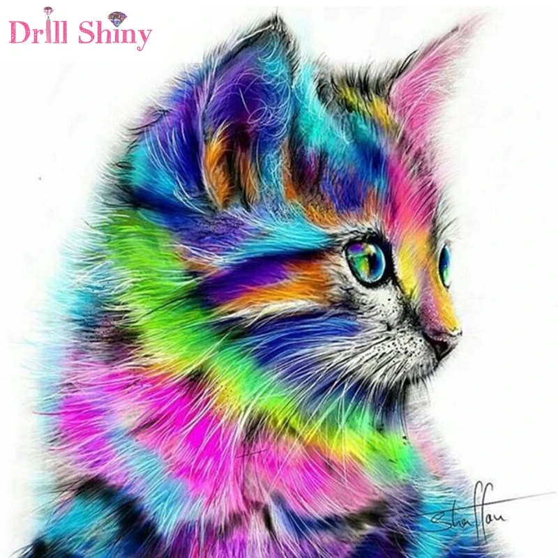Gerudi 5d Diy Lukisan Berlian Tupai Berwarna Warni Kucing Cat Mosaic Haiwan 3d Cross Stitch Needlework Kerajinan Hiasan