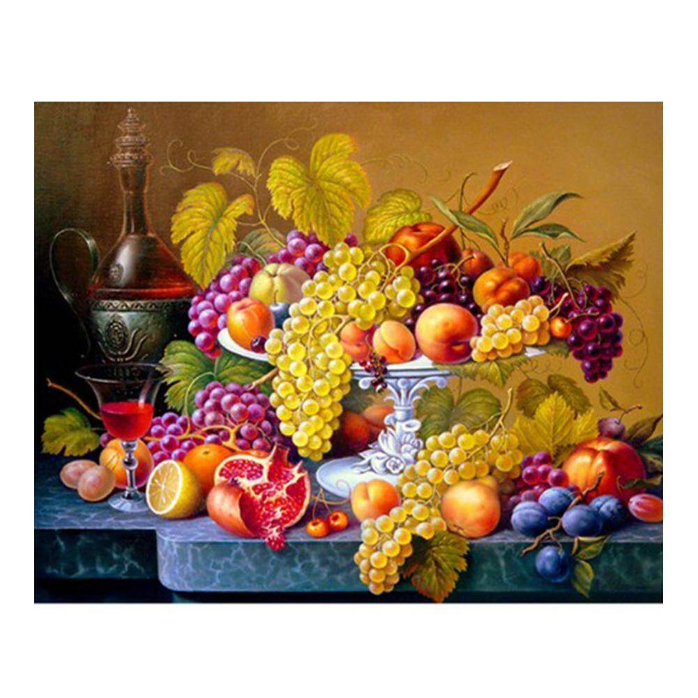 3d Dapur Buah Hadiah Lukisan Bulat Kristal Berlian Imitasi Bordiran Berlian Bergambar Dekorasi Dinding Modern Rumah Seni Diy Jahitan Menyilang Tanpa