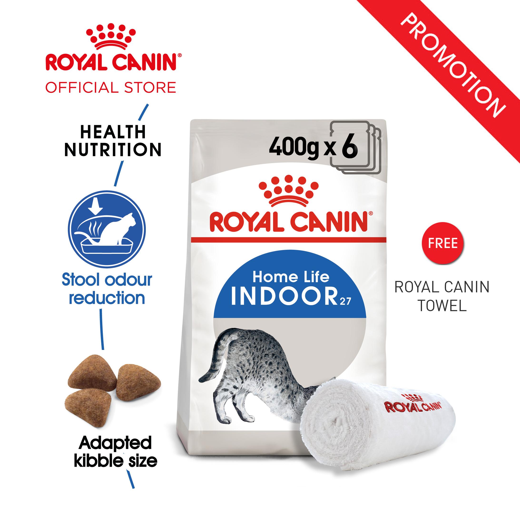 6x Royal Canin Indoor 27 Makanan Kucing Dewasa Dry 400gr Free Royal Canin Towel