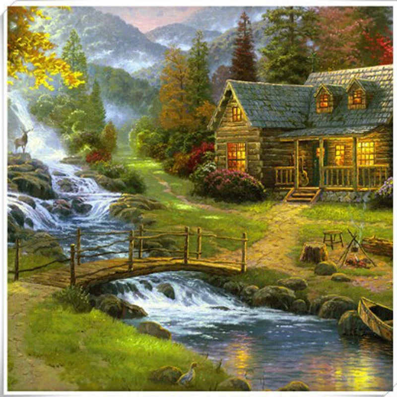 Terbaru Saiz Besar Lukisan Landskap 5d Cottage Taman Cemerlang Kreatif Sulaman Diamond Lukisan Diy Hadiah Hijau Hiasan Rumah