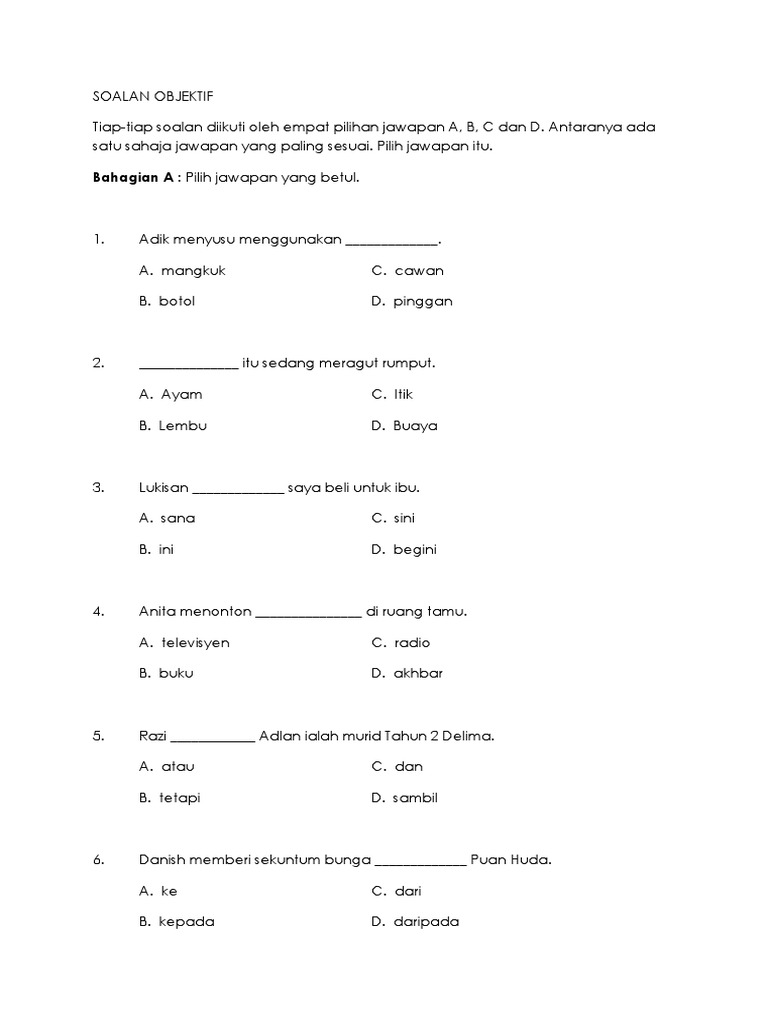Ujian Pertengahan Tahun Bm Thn 2 Kssr