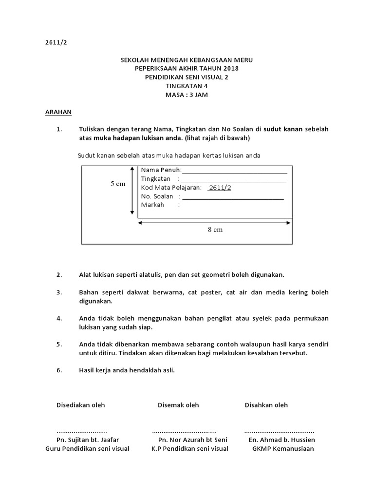 P Seni Visual Kertas 1 2 Percubaan Spm 2007 Mrsm H
