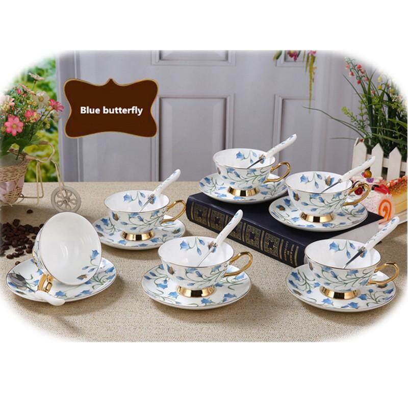 Model Eropa Porselen Tulang Cangkir Kopi Gelas Keramik Peralatan Set Kualitas Unggul Kreatif Rumah Tangga Piring Kecil Kopi Set Tea Time Gelas Air