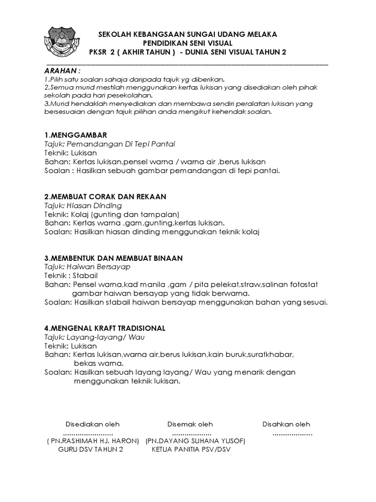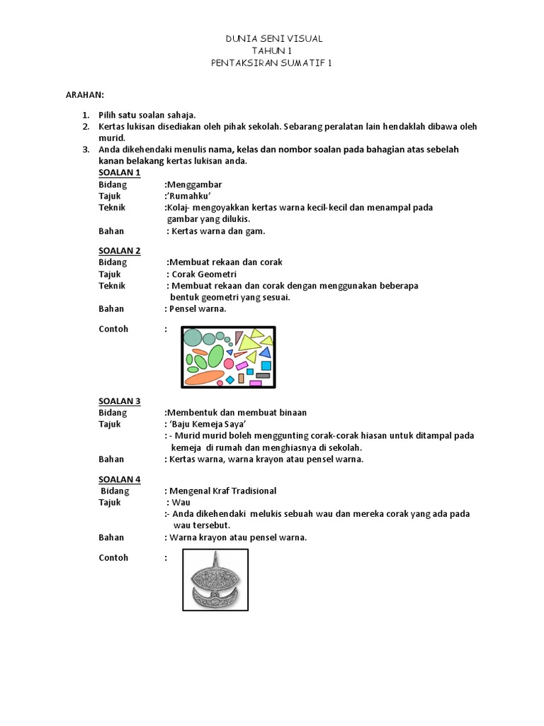 Soalan Pertengahan Tahun 2020 Seni Tahun 1 Dan 3