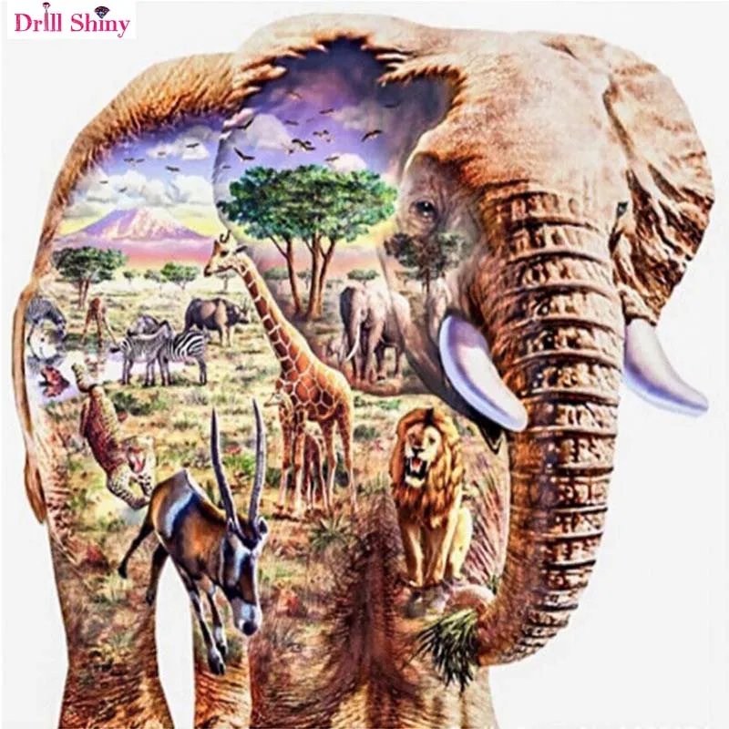 Penuh Persegi Berlian Sulaman Gajah Zoo Rumah Hiasan Mozek