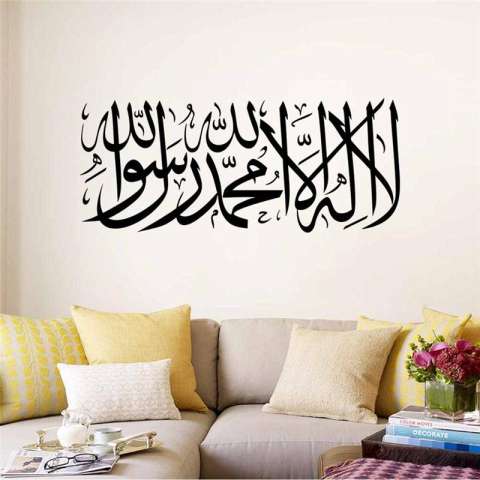 Arab Kaligrafi Stiker Dinding Ruang Tamu Dekorasi Decals Muslim Islam Vinyl Mural Seni Hitam Internasional 105459819