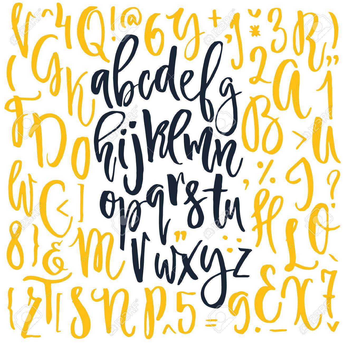 Handdrawn Calligraphic Font Latin Alphabet Drawn By Hand Vector