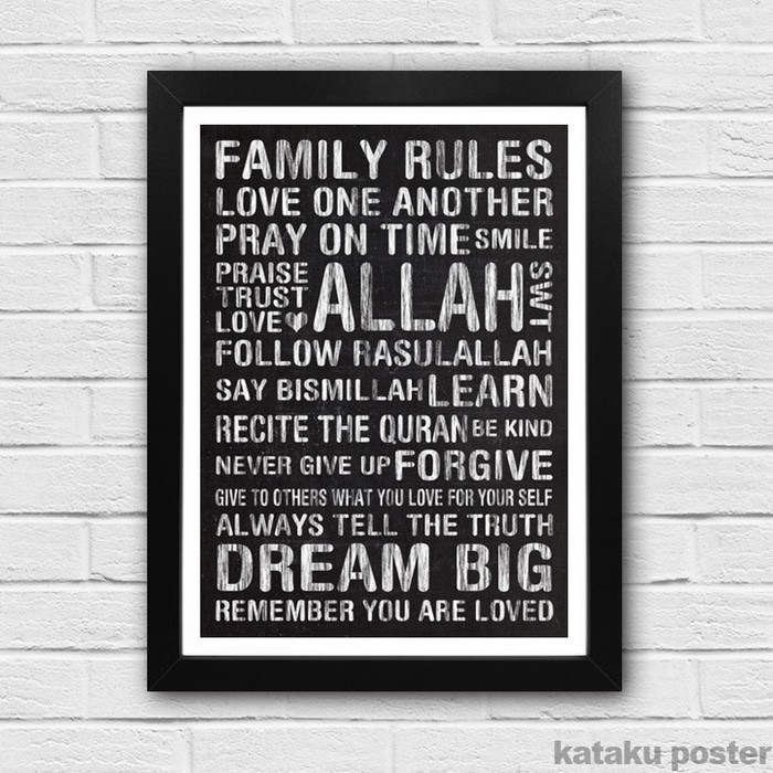 Hot Poster Inspiratif Family Rules Islami Hitam Putih Hiasan Dinding Lukisan Abstrak