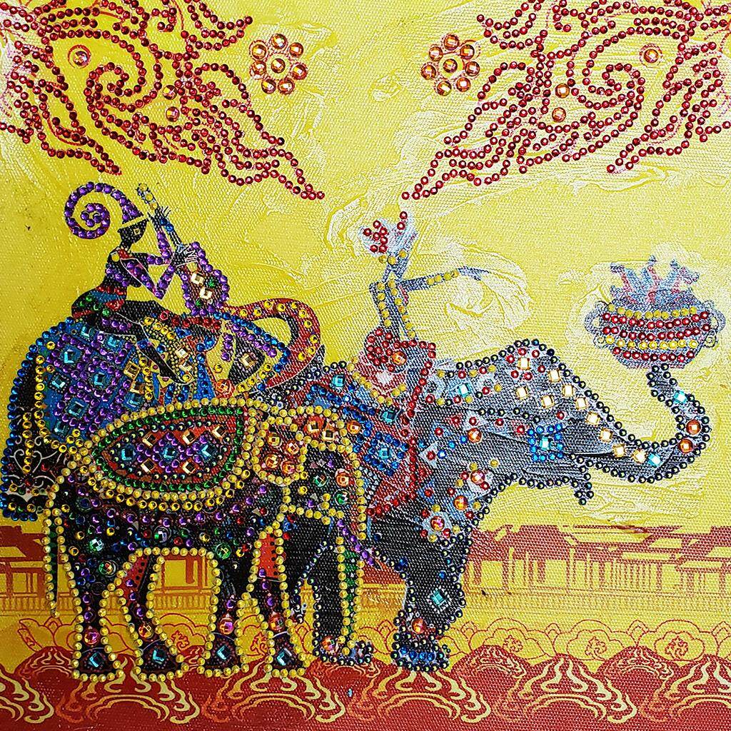 Etnis Berwarna Thailand Gajah 5d Berbentuk Khusus Lukisan Berlian Sulaman Sulaman Berlian Imitasi Kristal Salib Kerajinan Kit Diy