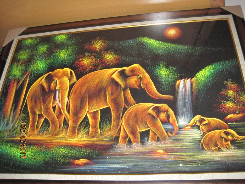 Terjual Lukisan Gajah Thailand Bagus Berkilau