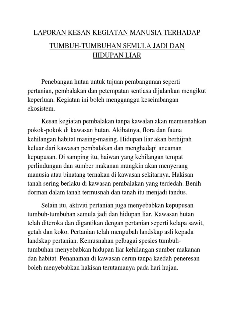 Laporan Kesan Kegiatan Manusia Terhadap Tumbuh Tumbuhan Dan