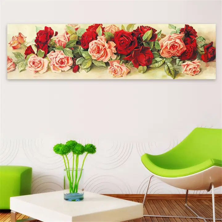 Lukisan Bunga Bunga Mawar Hiasan Dinding Digambar Tangan Tanpa Frame