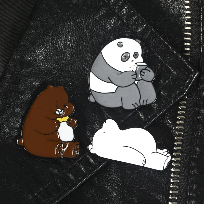 Dapatkan Cute Cartoon Panda White Bear Brown Bear Animal Hard Enamel Pin