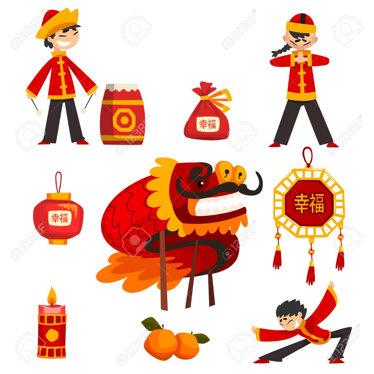 Collection Of Chinese New Year Decoration Elements Boy In
