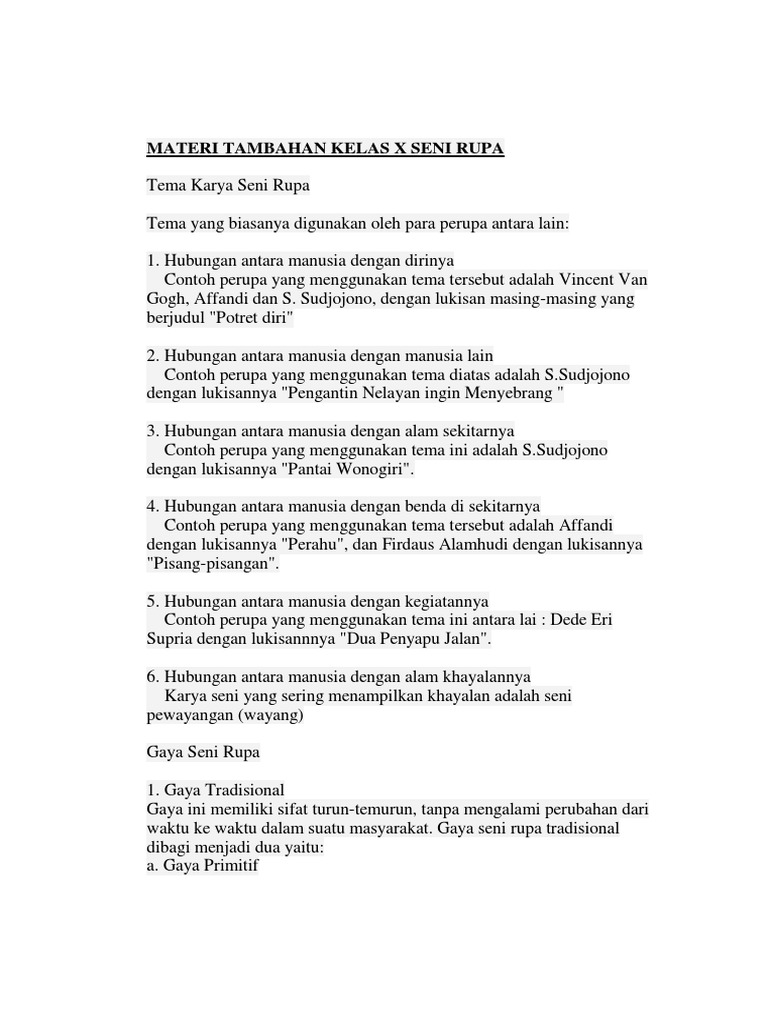 Seni Rupa Murni Tema Wujud Dan Corak Seni Rupa Murni