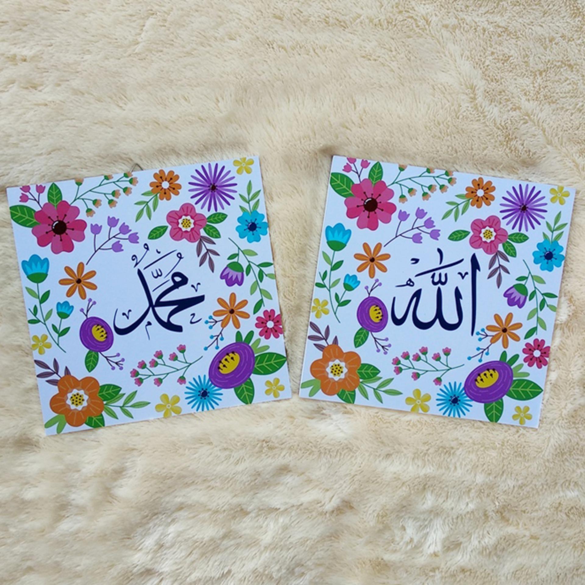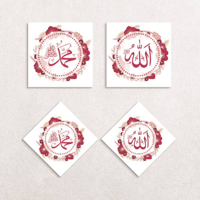 Suppliernatgeo Hiasan Ruangan Poster Kayu Gantungan Dinding Islami Kaligrafi Lafazd Allah Muhammad Bahan Mdf 20x20cm Pajangan Kaligrafi Hiasan
